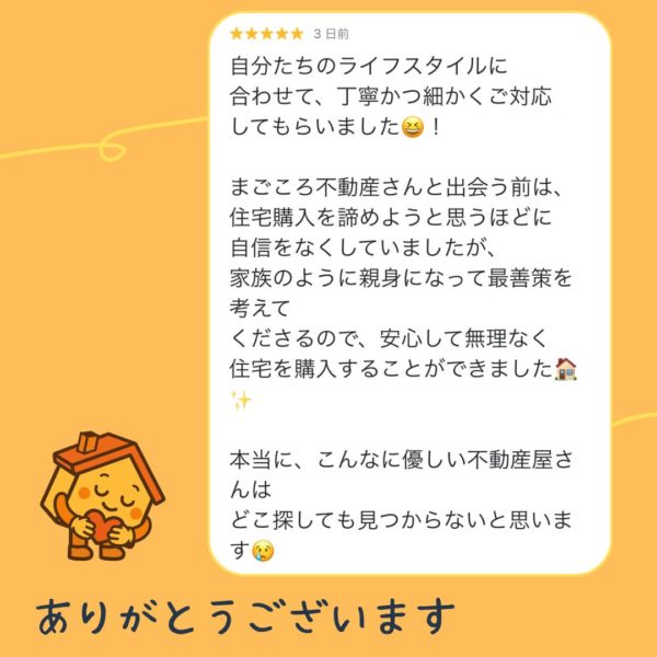 ご成約いただいたお客様からのお喜びの声をご紹介します。